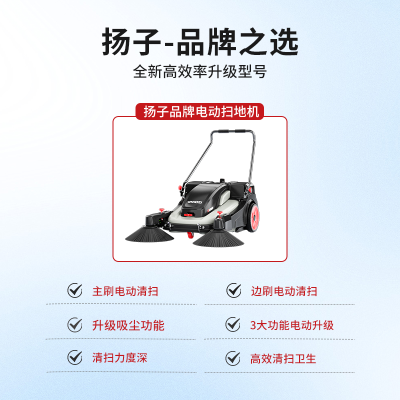 揚(yáng)子YZ-S2pro手推式電動(dòng)掃地機(jī)全新升級(jí)電力驅(qū)動(dòng)清潔效率每小時(shí)可達(dá)5250平方米,工廠、車(chē)間、物業(yè)等道路清潔一推即凈。