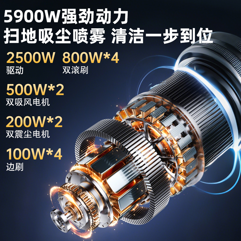 5900W強勁動力,掃地吸塵噴霧清潔一步到位,國內知名品牌電池單次滿電可清掃120000㎡