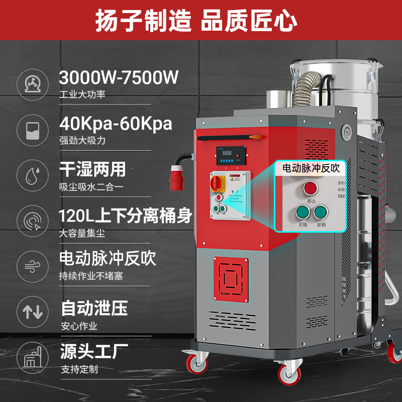 揚子C12/5500W工業吸塵器多種場景任意選擇,選擇揚子只為使用更高效輕松,干濕兩用、自動反吹灰、120L大容量。