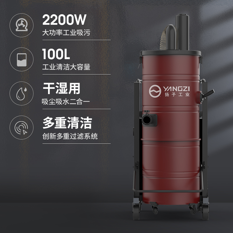 揚子工業吸塵器C10產品特點: 1.一機應對清潔問題,適用多場景,大吸力高效清潔大顆粒物和液體。 2.干濕兩用,一機多能,輕松應對工業大顆粒垃圾與污水。 3.2200W純銅線電機,不做