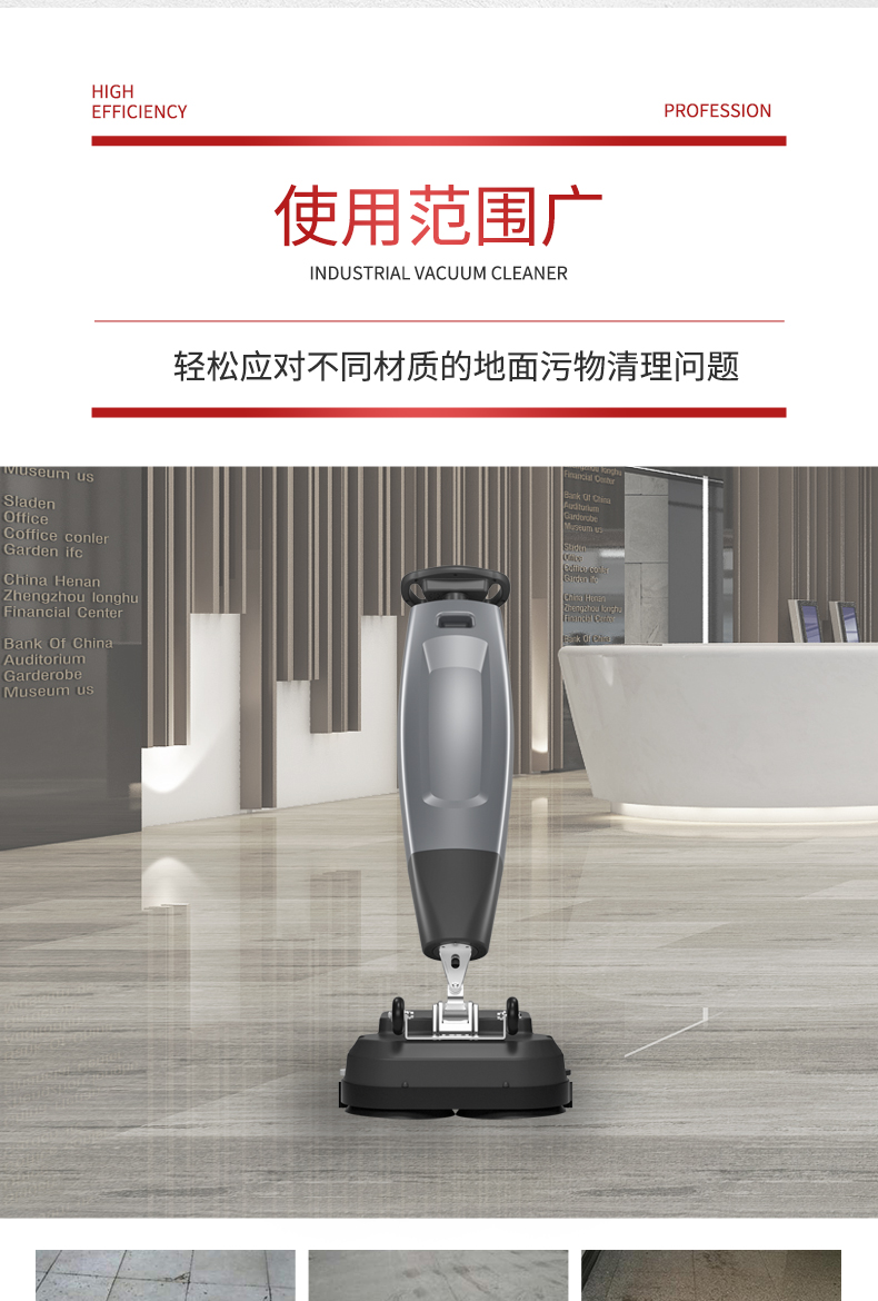 揚(yáng)子酒店式洗地機(jī)YZ-X430機(jī)身小巧輕便,可輕松轉(zhuǎn)移,無(wú)懼門(mén)檻、樓梯、臺(tái)階。清潔范圍更廣泛。機(jī)身設(shè)計(jì)為旋轉(zhuǎn)活動(dòng)結(jié)構(gòu),使用時(shí)可自由旋轉(zhuǎn),讓清潔更輕松,讓污漬無(wú)處可逃。輕松應(yīng)對(duì)墻角、床底、桌底等細(xì)小角落。